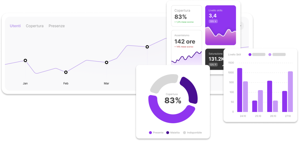 Governa in tempo reale assenze, richieste di ferie e permessi. Tutte le informazioni vengono tracciate in modo preciso e aggiornato, assicurando una pianificazione sempre puntuale e sotto controllo.