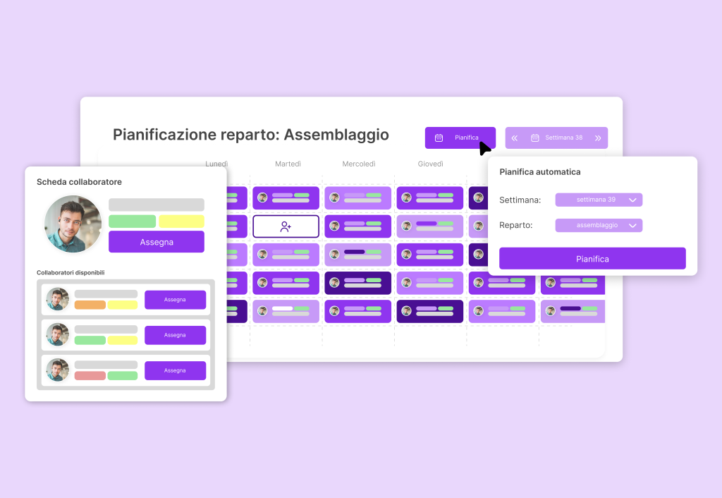 La piattaforma organizza in modo intelligente le risorse in base a skill, certificazioni e normative, assicurando copertura continua delle linee anche in presenza di flussi produttivi variabili e configurazioni complesse.